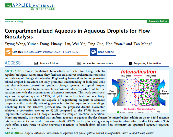 生命学院孟涛教授团队全水相流动生物催化新成果