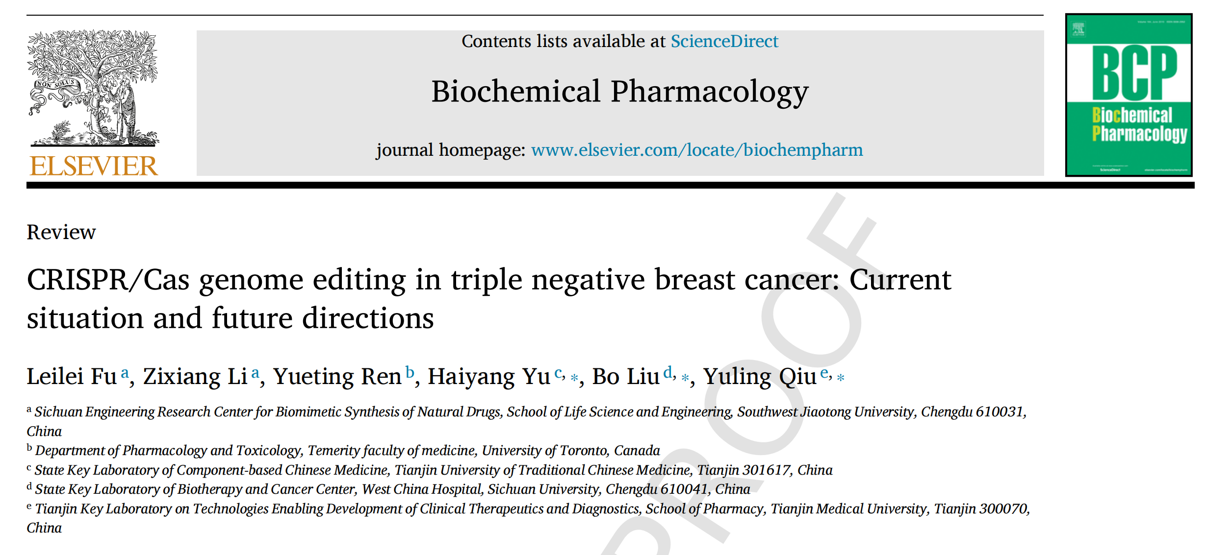 2023-02-10近日,符雷蕾研究小组与多伦多大学,四川大学,天津中医药大学和天津医科大学合作在药理学知名期刊Biochemical Pharmacology(中科院2区,...