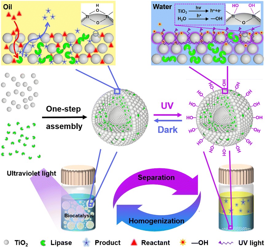 微纳生物技术团队在Green Chemistry发表研究论文:高效和可循环的光响应Pickering界面生物催化